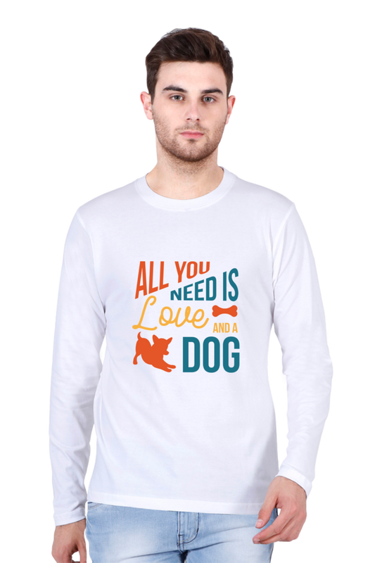 Male Round Neck Full Sleeve T-Shirt - All you need is Love and a Dog Quote DTF Print