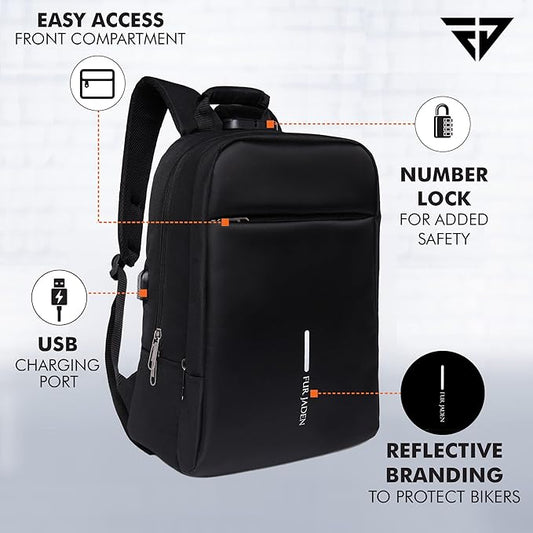 FUR JADEN Anti Theft Number Lock Backpack Bag with 15.6 Inch Laptop Compartment, USB Charging Port & Organizer Pocket for Men Women Boys Girls