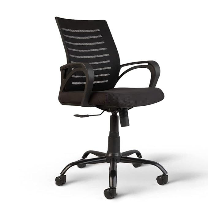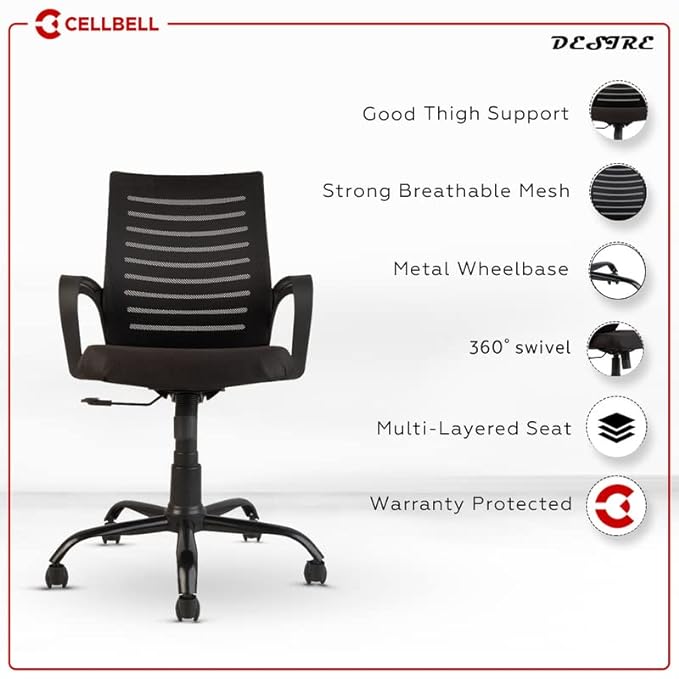 CELLBELL Desire C104 Mesh Mid Back Ergonomic Office Chair/Study Chair/Revolving Chair/Computer Chair for Work from Home Metal Base Height Adjustable Chair [Black] Virtual Demo Available