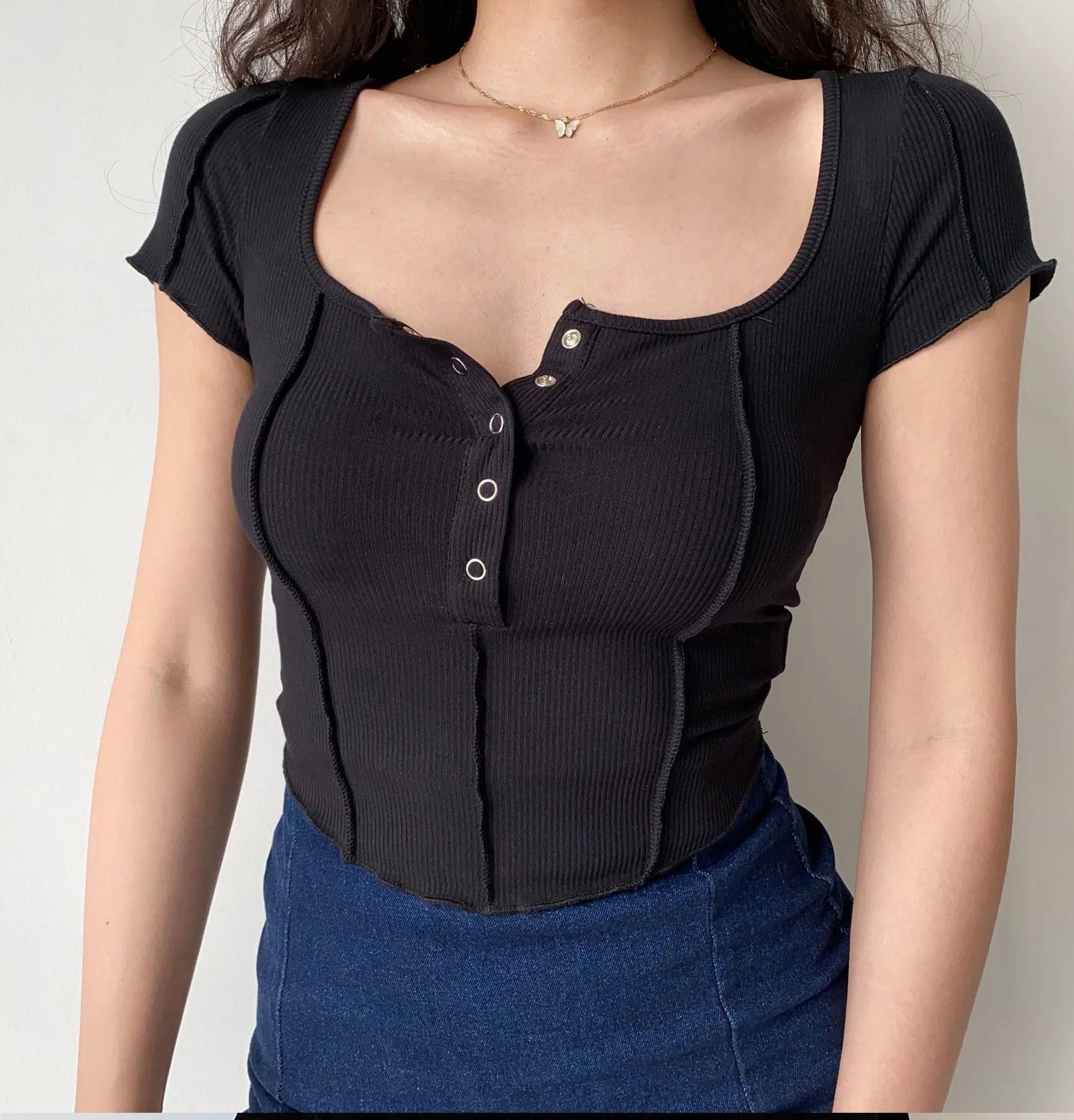 Product Name: Clafoutis pack of 2 women new design button down crop top