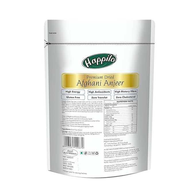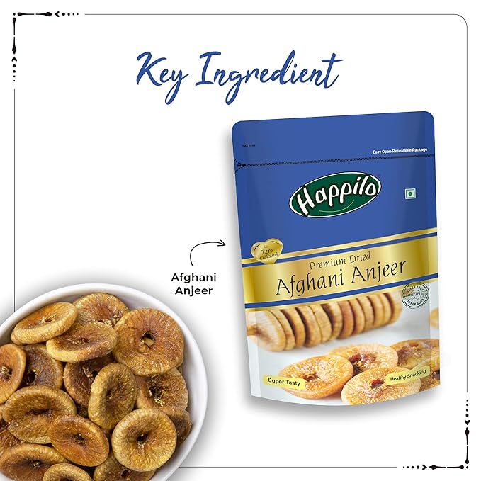 Happilo Premium Dried Afghani Anjeer 200 g Pack | Dried Figs Ajnir | Rich source of Fibre Calcium & Iron | Low in calories and Fat Free | Non-GMO Dried Figs