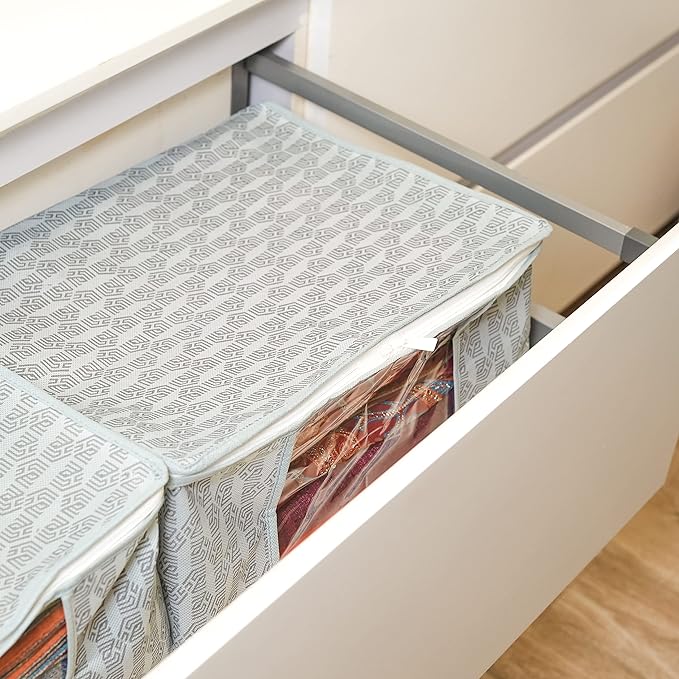 Homestrap Set of 6 Non-Woven Printed Saree Cover/Cloth Storage/Organizer with Transparent Window (Grey)(Featured on Shark Tank)