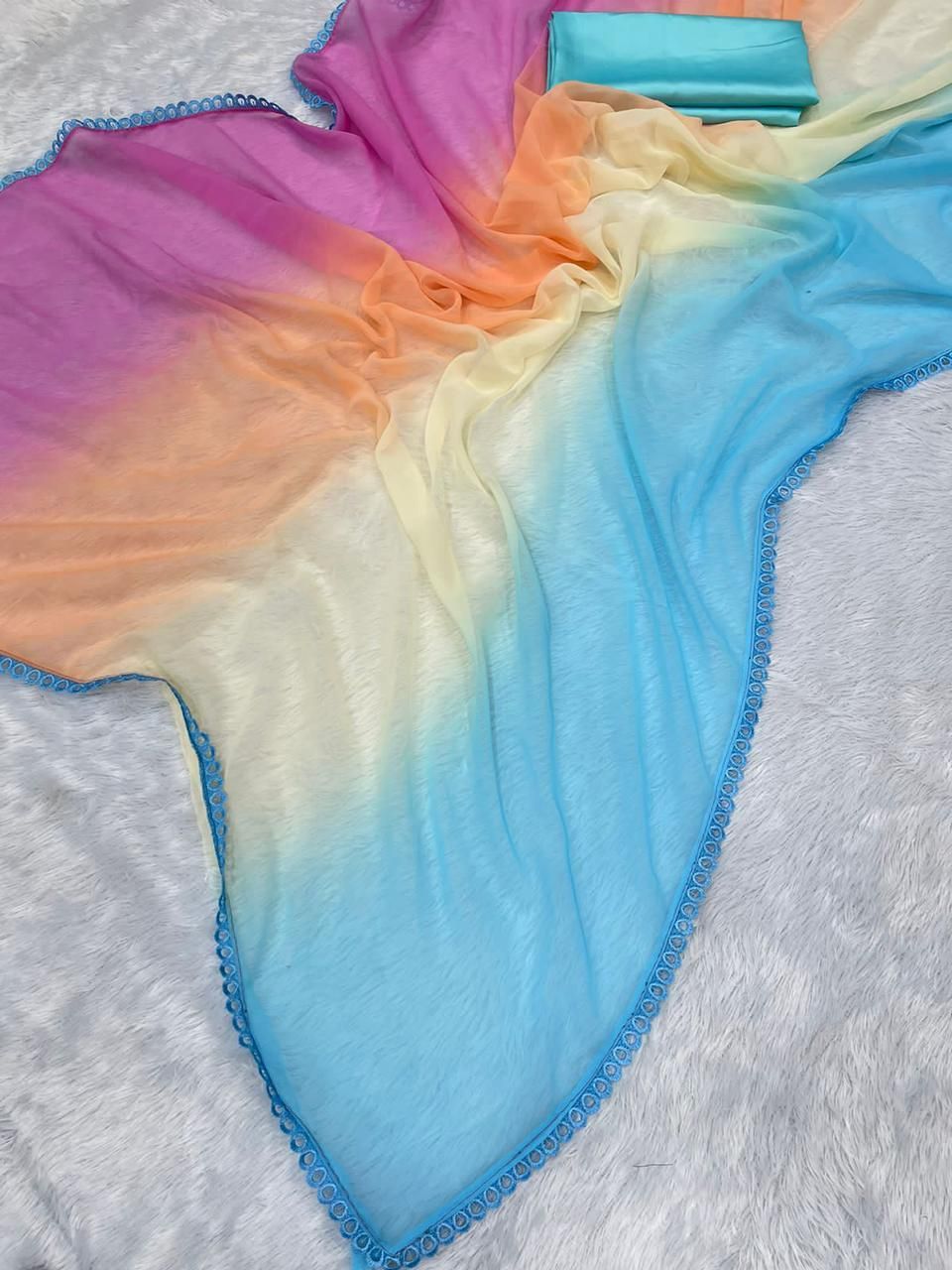 Experience elegance and style with our Trendy Printed Georgette Saree. Made from high-quality georgette, this saree features trendy prints that will make you stand out in any occasion. Its lightweight material and beautiful drape provide comfort and grace, making it a must-have in every fashion-forward woman's wardrobe.