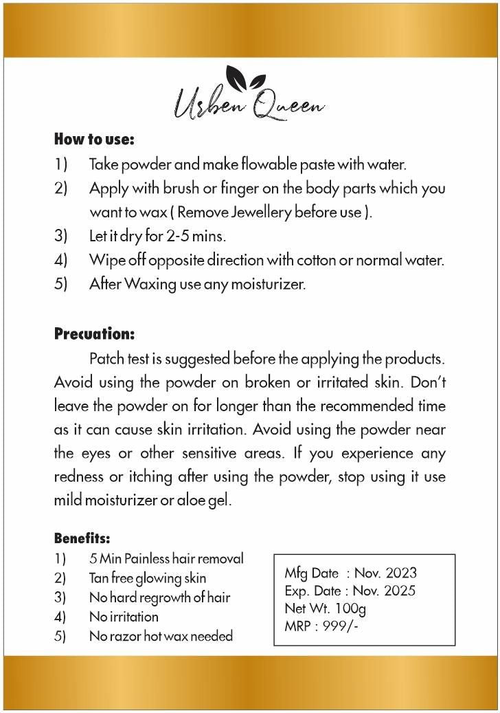 Product Name: Turmeric Facial Wax - 5 Minute Painless Herbal Wax Powder (100g)